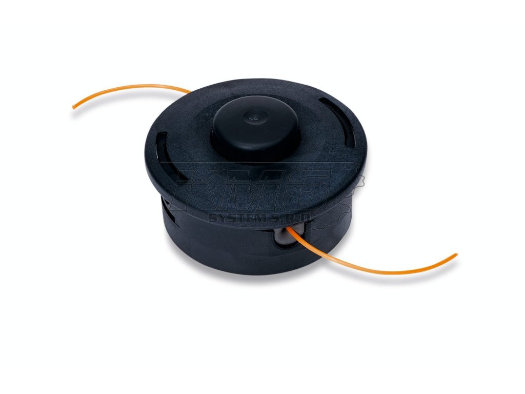 Dvoustrunová žací hlava pro vyžínání a dočišťování. Žací struna se automaticky nastaví krátkým přitisknutím žací hlavy k zemi.